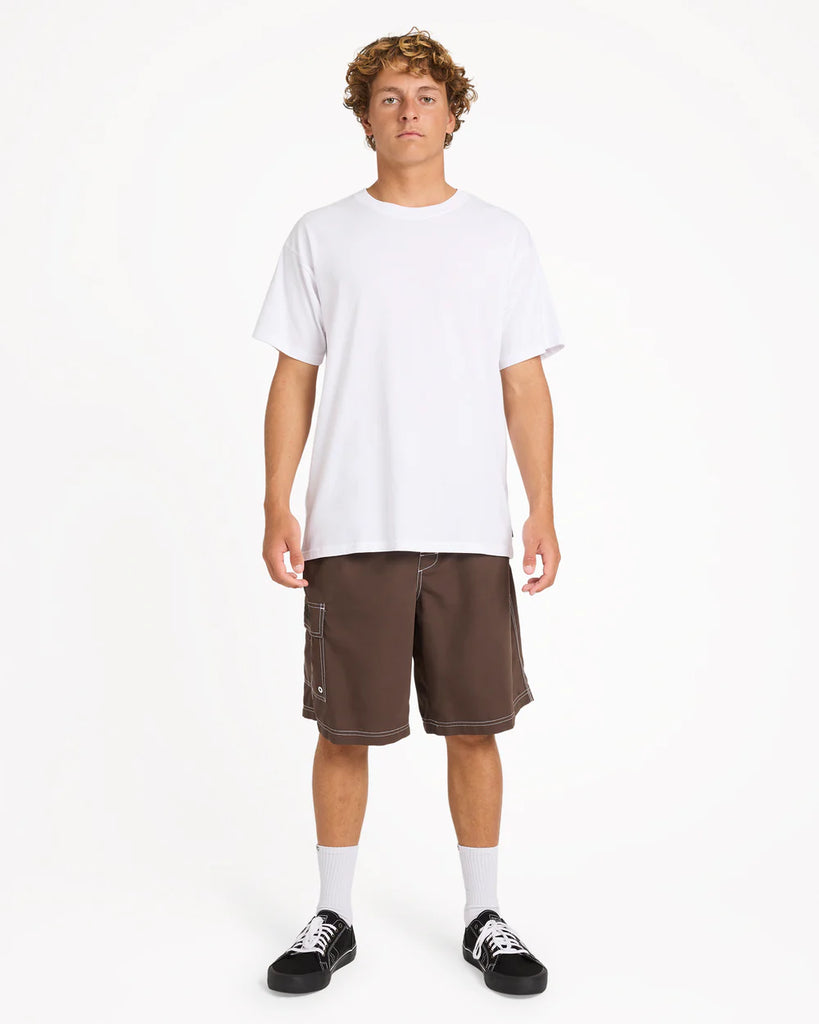 The Throw On is the perfect hybrid. The rigid Boardshorts fabric is light and durable, plus it's the best length ever made in walkshorts 21 inch. The elastic waist makes it super comfy, the contrast stitch detail finishes the look and the branding hit on the cargo pocket is second to none. Wrap any waist around these and you wont go back to another short until skinny leg jeans and white thongs make a resurgence.