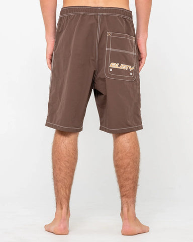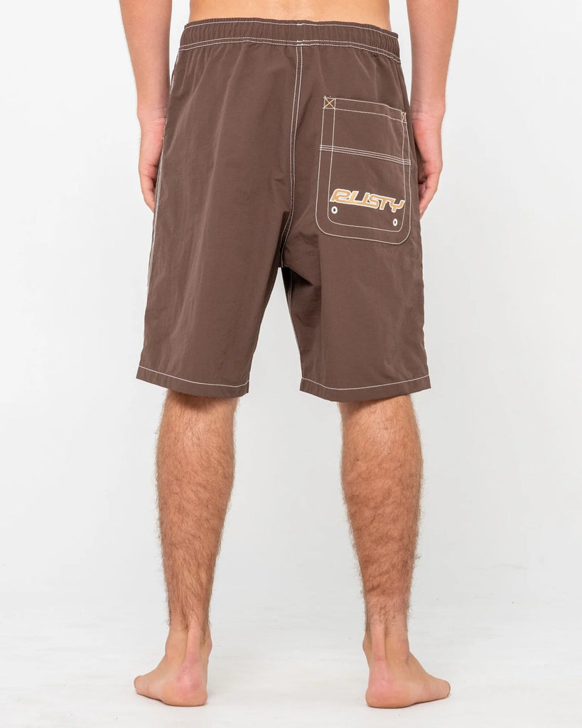 Baggy Fit Elastic Waist Boardshort With Contrast Stitch Tri-coloured Taping And A 22" Outseam. 100% Nylon Technical Fabric