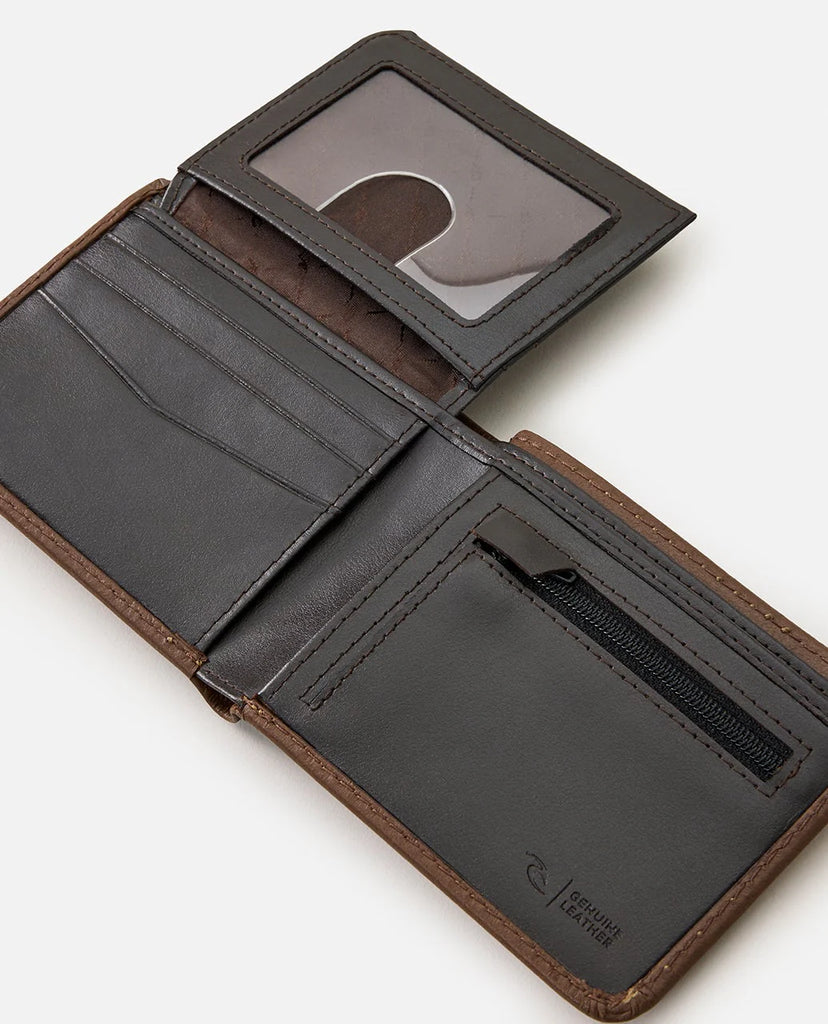 The Wetsuit Logo RFID All Day Wallet keeps your essentials secure with multiple card slots, an ID window, and RFID protection in a classic leather build.