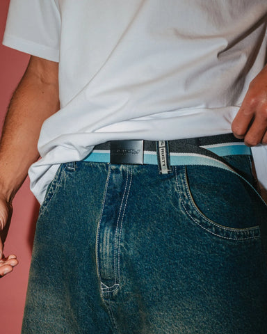 Reversible Webbing Belt With Rusty Buckle With Bottle Opener. 100% Polyester Webbing