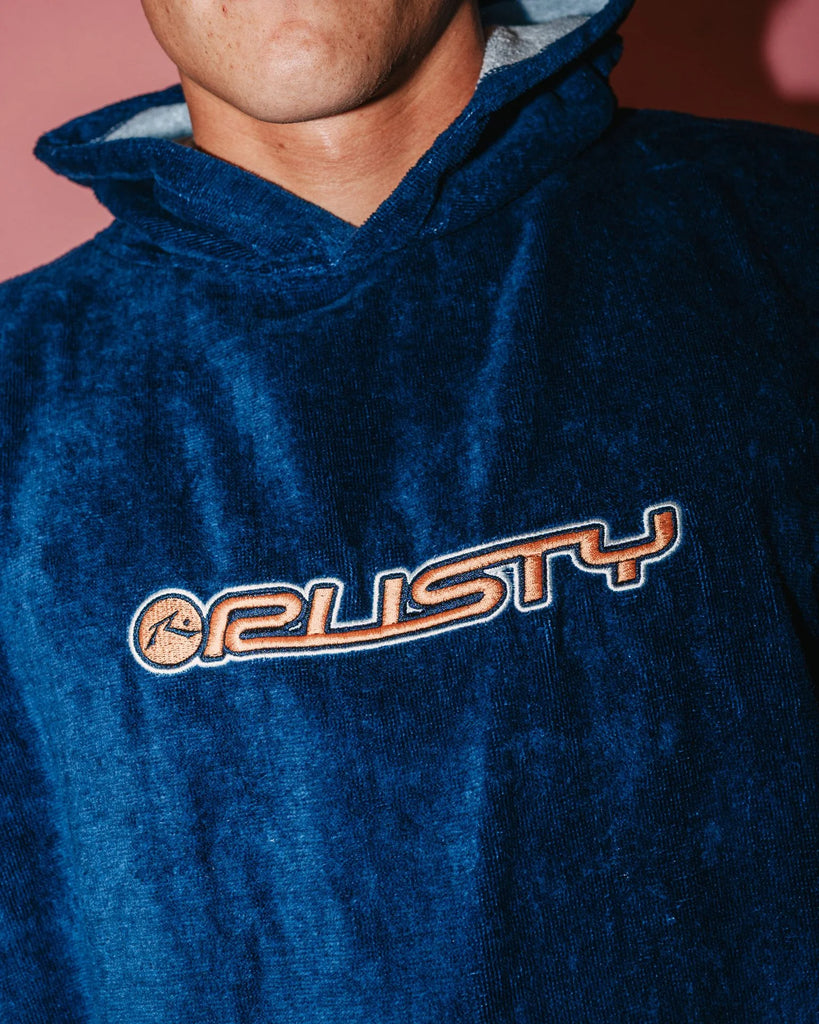 Hooded Change Towel With Rusty Logo Embroidery. 100% Cotton Velour Towel Fabric