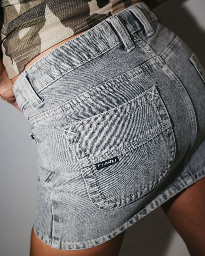 Low Rise Mini Denim Skirt. 100% Cotton Indigo Denim