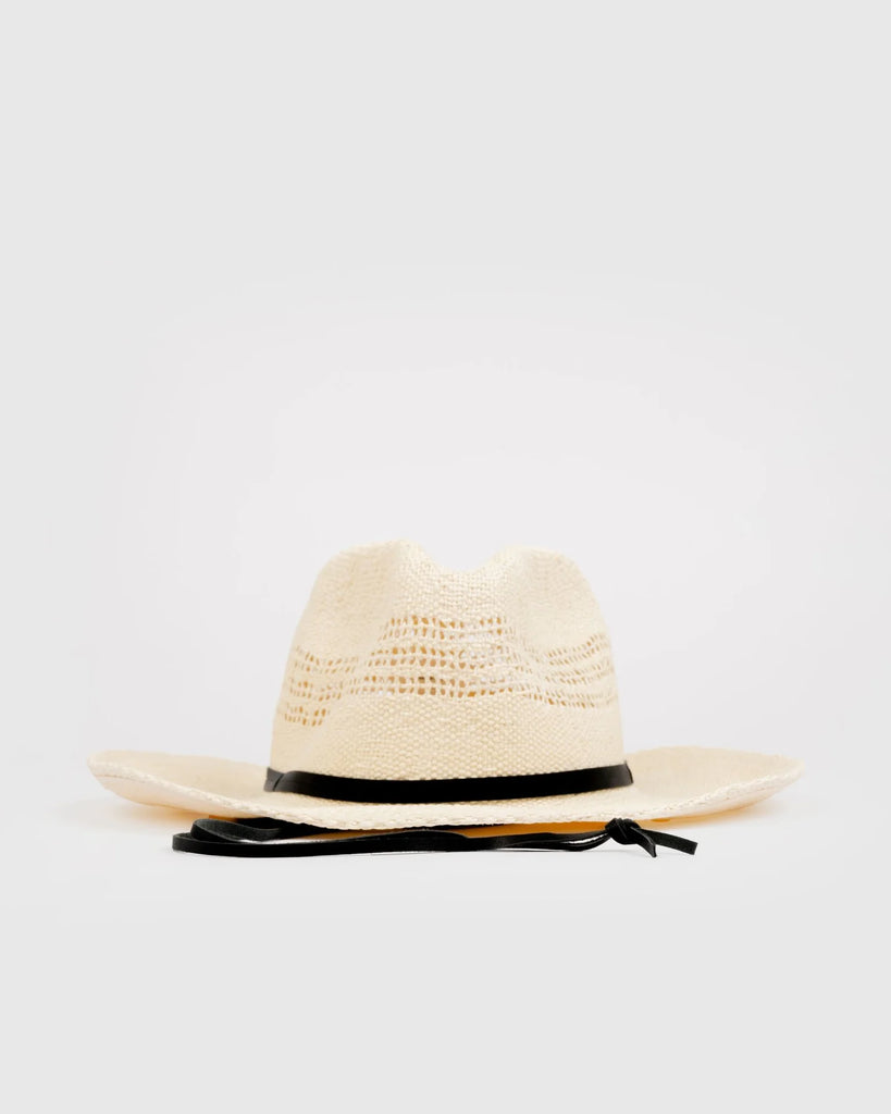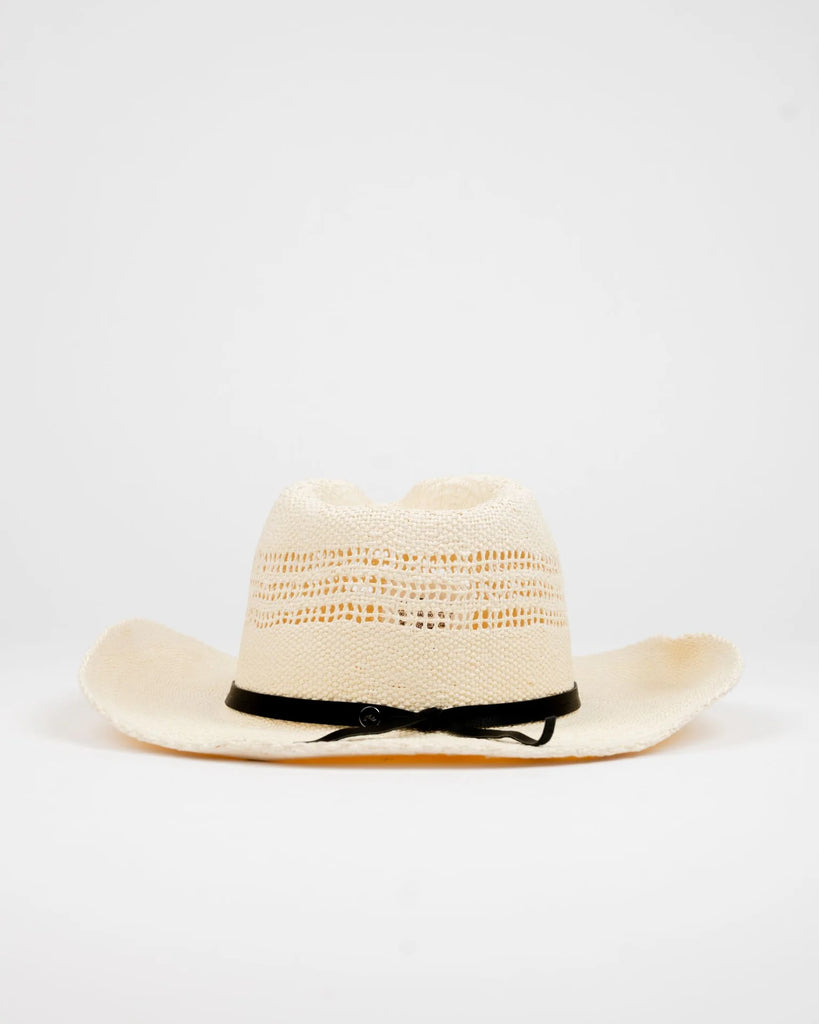 Cowboy Style Straw Hat With Speciality Crown Band And Rusty Metal Coin Trim And Drawstring. Paper Straw
