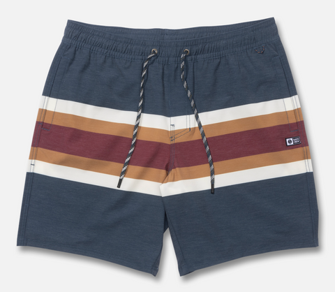 Crew Volley in Midnight Navy is a 4-way stretch boardshort made from washed back fabrication, side pockets, back right patch pocket with velcro closure & elastic waist with drawstring.