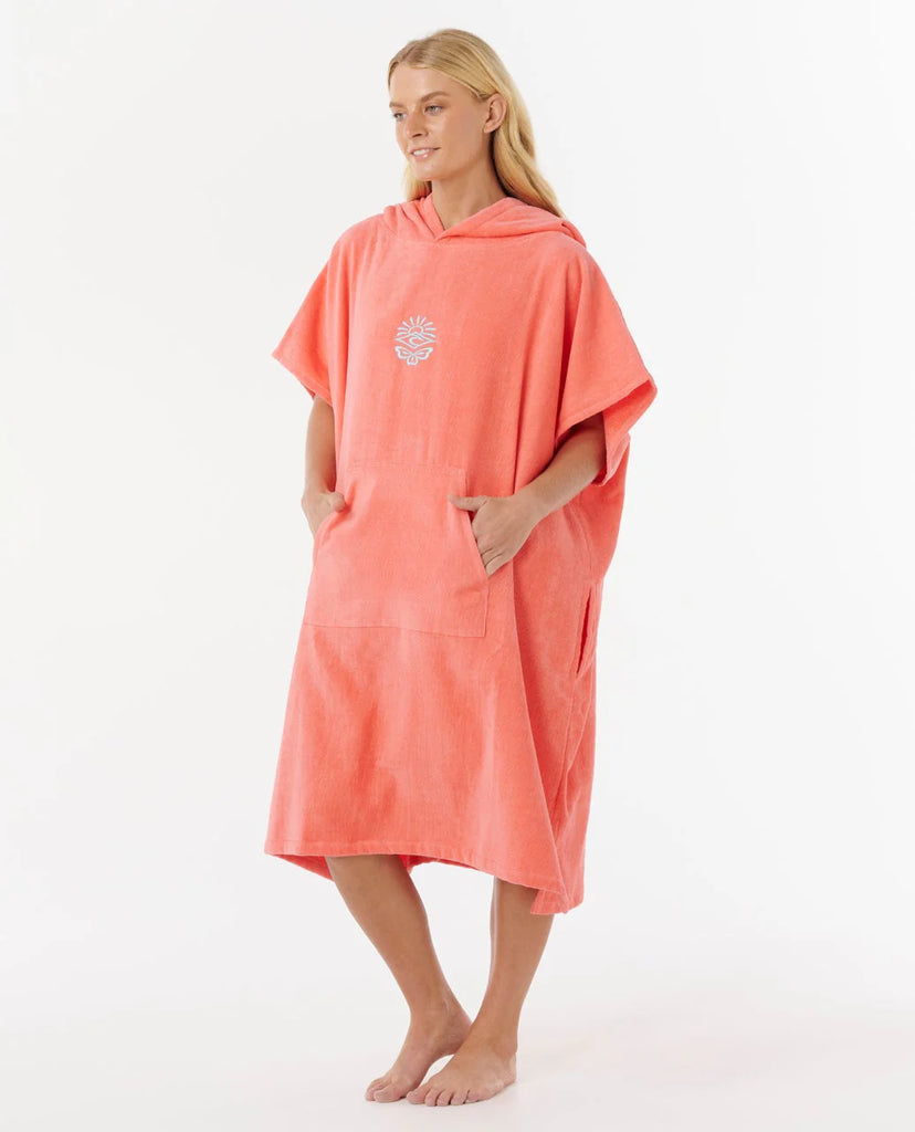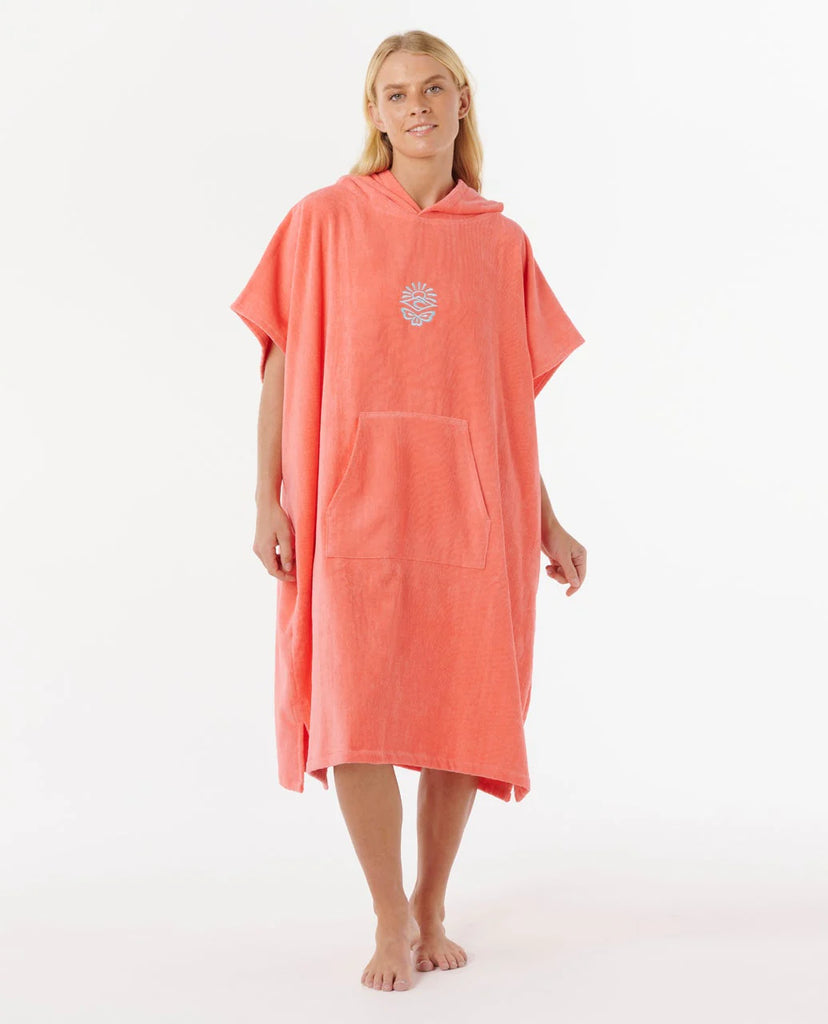 Soft and cozy, this hooded towel is made from 100% cotton cotton velour (330 gsm) with a softener wash for extra plushness. Designed with sleeves for added comfort and side splits for ease of movement, it includes embroidered details for a subtle brand touch.