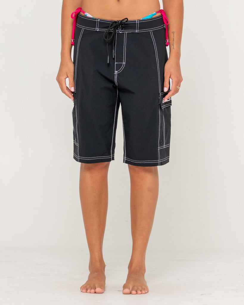 Baggy Fit - 22 Outseam Fixed Waist Boardshort With Cargo Pockets And Contrast Stitch. Nylon Spandex Ripstop