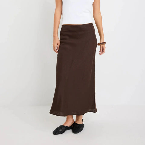 The Bliss Linen Bias Midi Skirt from Re:Union Label is your effortlessly elegant wardrobe staple, designed for comfort and timeless style. Crafted in 100% linen with a flattering bias cut and soft elasticated waist, it drapes beautifully and moves with you through every part of your day. Whether you're heading to the office, brunching with friends, or dressing up for dinner, this versatile piece makes every outfit feel elevated.